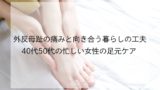 今回は、外反母趾と女性ホルモンの関係を、暮らしの中のやさしい視点で紐解き、毎日を支える足に寄り添う時間の作り方をお伝えします。